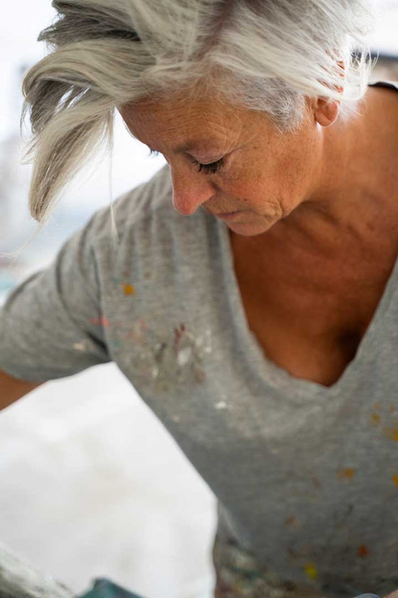 Sprituality or reality, my fantasy world and my freedom. When I am painting, I am in a meditative state of mind (which is called “a chi kung state of mind”). That is when I feel most balanced. I am in control of my energy, from which I can move slowly and transfer it into flowing movements. A combination of energetic movements, a coherence of strength and softness, with all kinds of materials such as acrylic and charcoal.