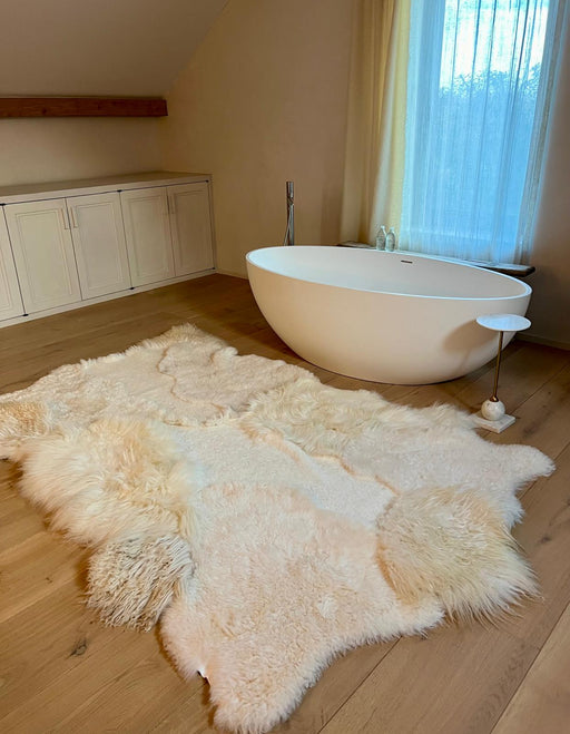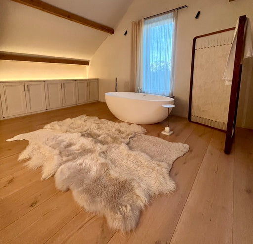 Sourced from the finest sheepskin producers across Scotland, Ireland, Sweden,Poland, Austria, and Holland our sheepskin rugs are handcrafted with attention to detail. They are treated with natural products to preserve its vibrant colors,luxurious softness and timeless appeal. Our contemporary rugs elevate any interior space with a sophisticated design, introducing an atmosphere of refined comfort and elegance. Each piece reflects artisanal craftmanship , making it a distinctive addition to homes seeking aesthetic beauty and sustainable quality.
